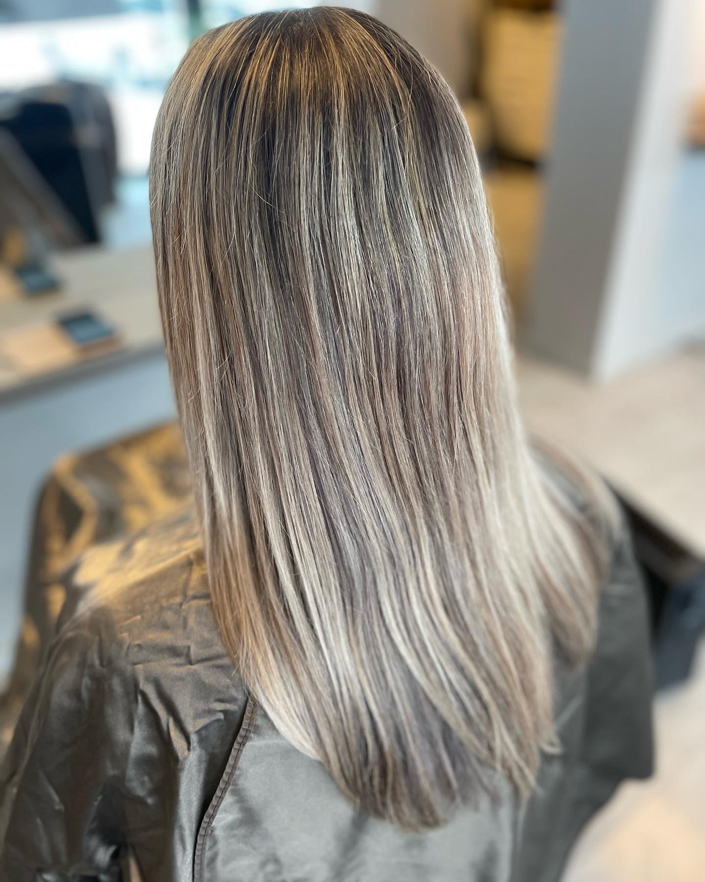 - Kreativ farge halvlangt hår m. striper og korrigeringp
